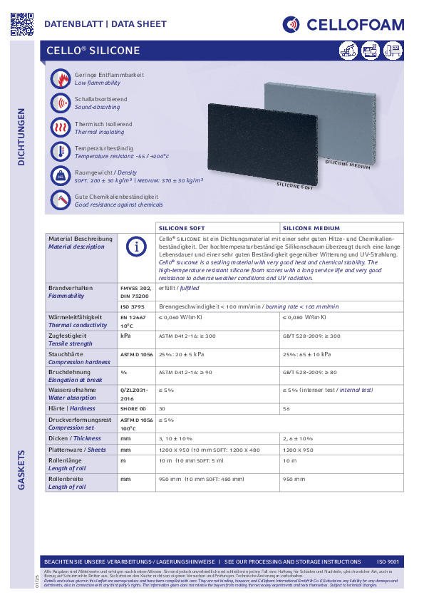 Cello® SILICONE ist ein Dichtungsmaterial mit einer sehr guten Hitze- und Chemikalienbeständigkeit. Der hochtemperaturbeständige Silikonschaum überzeugt durch eine lange Lebensdauer und einer sehr guten Beständigkeit gegenüber Witterung und UV-Strahlung. Cello® SILICONE gibt es in 2 Ausführungen: SILICONE soft und SILICONE medium.Related products